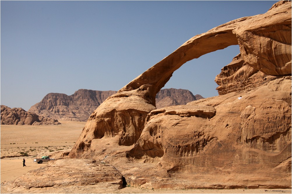 Вообще, езда по пустыне — наверное, не самое большое развлечение. Даже если эта пустыня — Вади Рам. Фантастические пейзажи, за которые эти места ещё называют Лунной пустыней, быстро слипаются в одну сплошную вереницу гор, скал и песка. Позади остаётся железнодорожная насыпь. Это одно из ответвлений знаменитой Хиджазской железной дороги, соединявшей Дамаск с Мединой и ставшей почти столетие назад одним из фронтов, на котором действовали арабские племена в ходе «Великой арабской революции», освободительной кампании 1916-1918 годов против турок.