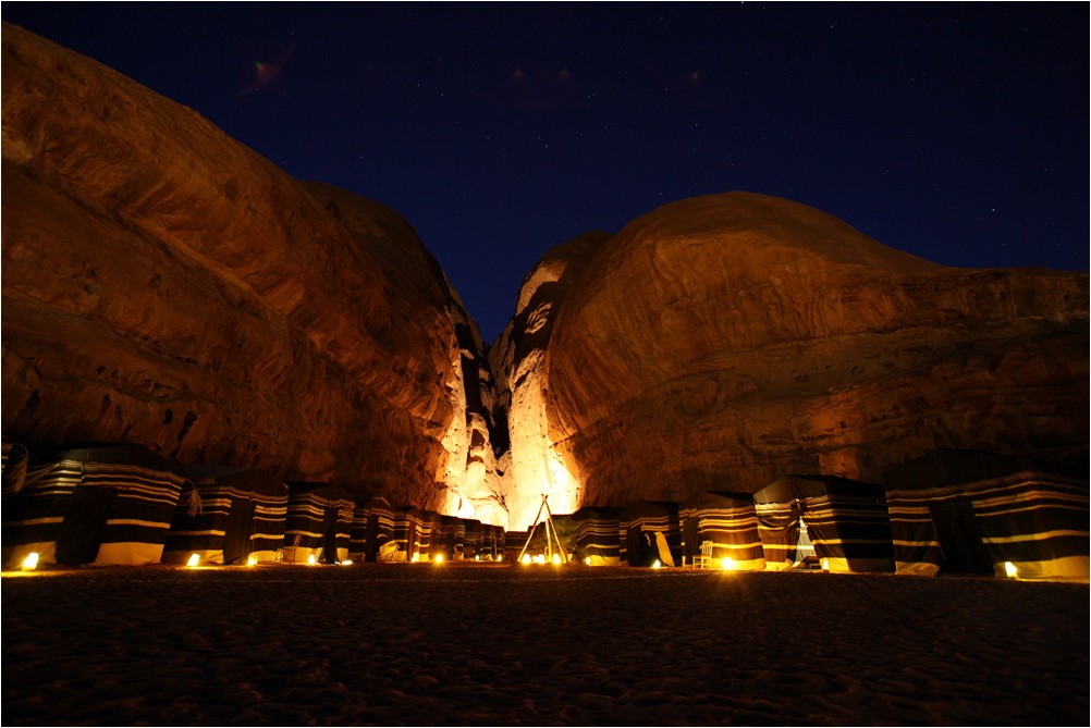 Показываются какие-то шатры. Это наша первая остановка. Бедуинские палатки — те самые, из верблюжьей шерсти, «антискорпионовые» — расставлены небольшим лагерем в одном из ущелий. Да, именно ущелий, потому что Вади Рам — это сочетание пустыни и гор; огромные пространства между горными отрогами и отдельными скалами занимают песчаные и каменистые равнины.