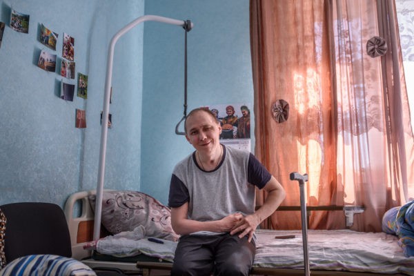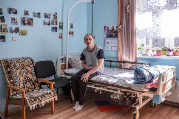 Из ногинской больницы Сашу перевели в Балашиху – по месту жительства. Именно там появилась первая положительная динамика: Саша стал самостоятельно дышать, есть, двигать руками и ногами. В 2017 году в московской больнице ему сделали еще одну операцию: закрыли гигантский дефект левой теменной области. За последние три года он прошел несколько курсов реабилитации в разных центрах – бесплатно, по ОМС. Заново учился сидеть на кровати, держать спину, учился ездить в инвалидном кресле, а потом и ходить.