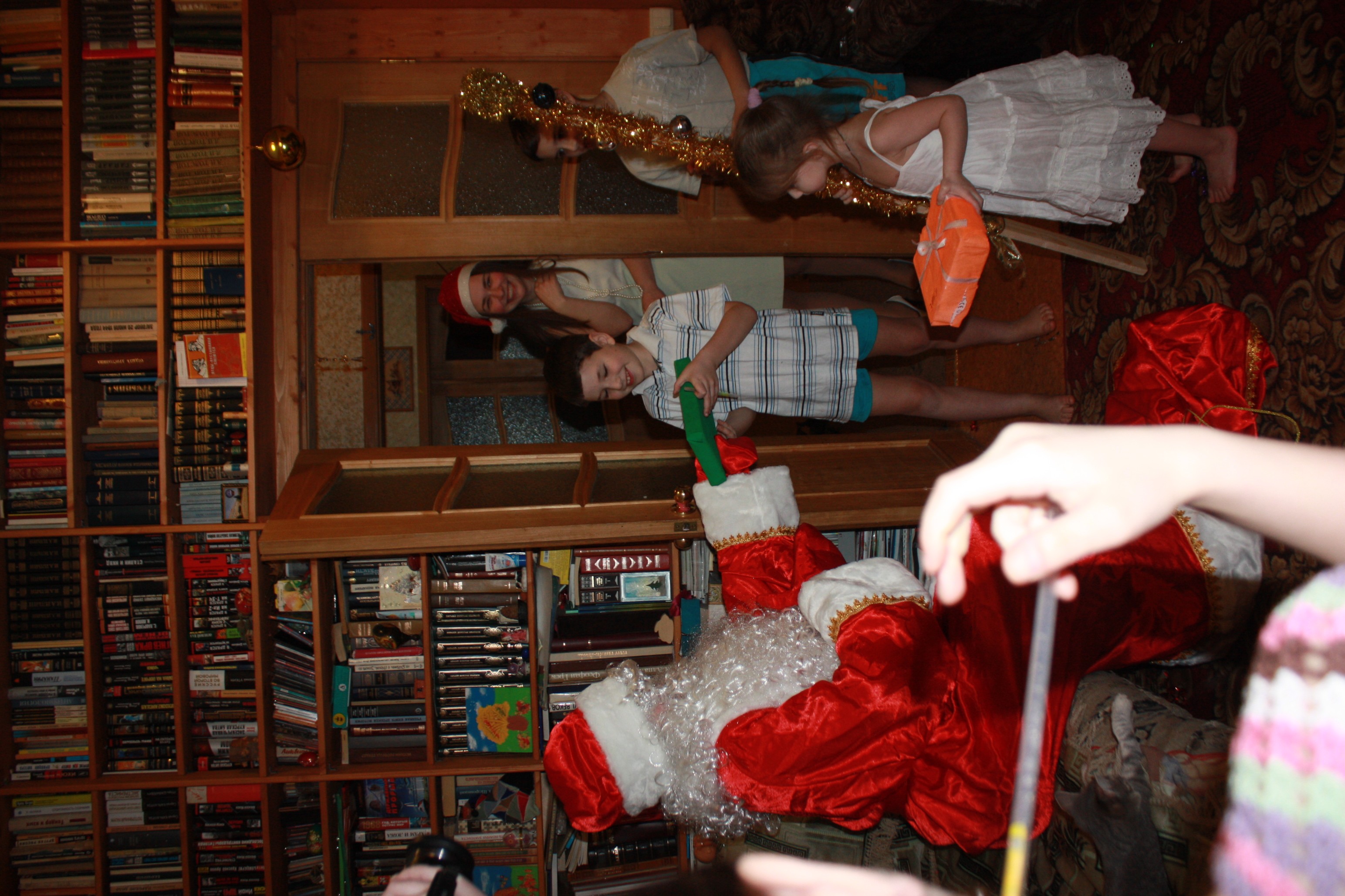 Появилась у нас в семье и новая традиция. Несколько лет назад наш знакомый подарил нам костюм Деда Мороза. Решили воспользоваться. Одна из старших дочерей потихоньку за дверью переоделась и позвонила. Устроили это представление для нашей самой младшей. Ей тогда было два года. Поверила, испугалась слегка, но была очень довольна.