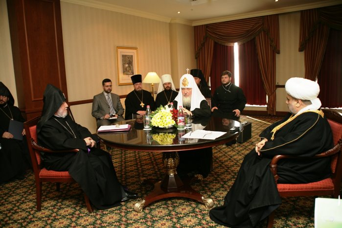 29 ноября. ПРАВМИР. В Ереване прошла встреча духовных лидеров России, Армении и Азербайджана – Патриарха Московского и всея Руси Кирилла, Католикоса всех армян Гарегина II и председателя Духовного управления мусульман Кавказа шейх-уль-ислама Аллахшукюра Пашазаде, сообщает Благовест-Инфо. Встреча прошла после заседания президиума Межрелигиозного Совета стран СНГ.