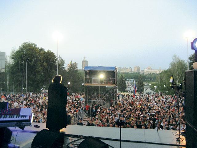 Выступление в ходе миссионерского тура на концерте Юрия Шевчука, западная Украина, 2008 год. Фото из личного архива протодиакона Андрея Кураева