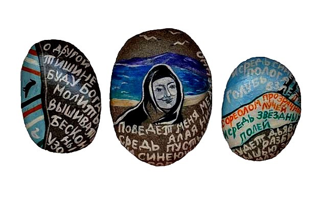 Осенью, в Москве, мне «попалась» книга К. И. Кривошеиной «Красота спасающая. Мать Мария (Скобцова)». Читала я её «неправильно». Сначала меня захватили акварельные работы, необычные «силуэты», вышивки. Дюны, развевающиеся на ветру волосы «силуэтов», «морские» сочетания цветов, самобытные иконы, иллюстрации к евангельским сюжетам, косынка, вышитая в концлагере… И почему-то, такое же, как летом, в Джемете, чувство доброго, незримого вездеприсутствия. Стихи матери Марии: