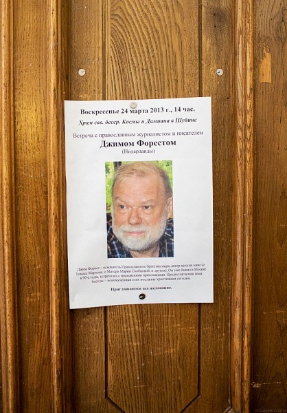 24 марта в храме Космы и Дамиана в Шубине голландский гражданин, американец по происхождению Джим Форест рассказывал о святости и новомучениках. Джиму 70 лет. Он живет в Голландии, в Амстердаме.