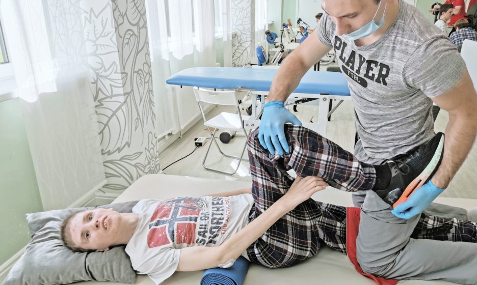 Повторно дефект черепной коробки закрыли в Москве. На первый курс реабилитации родные Олега собрали деньги сами. Молодой человек научился разжевывать и глотать пищу. Активной стала левая рука. У Олега сгибаются и разгибаются в коленях ноги. Он может стоять в вертикализаторе.