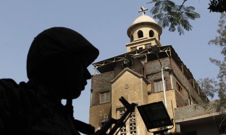 Солдат, стоящий на страже возле церкви Святой Марии, которая была подожжена во время столкновений между мусульманами и христианами 8 мая в районе Гиза в Имбаба (фото: Reuters)