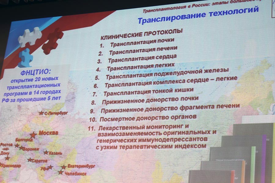 «Это масштабное событие совпадает со значимыми датами в истории отечественного здравоохранения: 50-летием первой трансплантации почки и 25-летием первой трансплантации печени в России. Трансплантология – яркий пример высоких достижений и возможностей современной медицины. Сегодня трансплантология заняла достойное место среди направлений медицины, позволяющих излечивать ранее неизлечимых пациентов, возвращать обществу социально активных граждан.