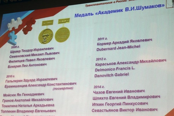 В течение уже нескольких лет за особые заслуги в области трансплантологии вручается медаль «Академик В.И.Шумаков». В числе лауреатов этой медали – выдающиеся российские и зарубежные ученые и хирурги.