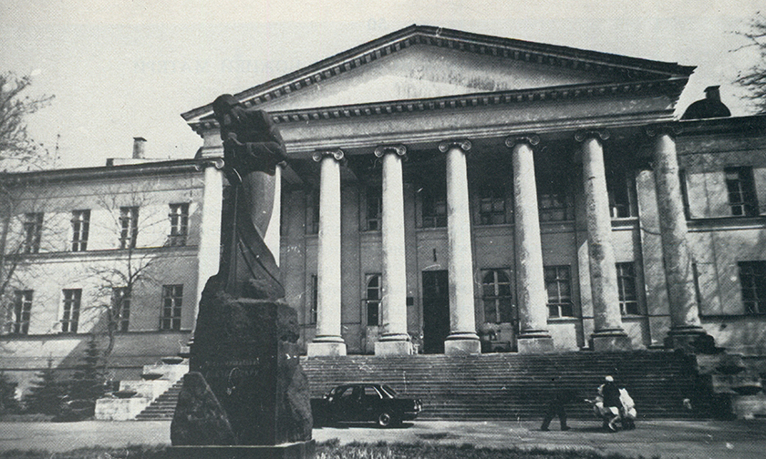 Фасад бывшей Мариинской больницы и памятник Ф.М. Достоевскому. Фото: Семен Звонарев, 1989 г.