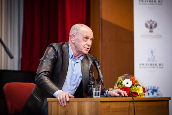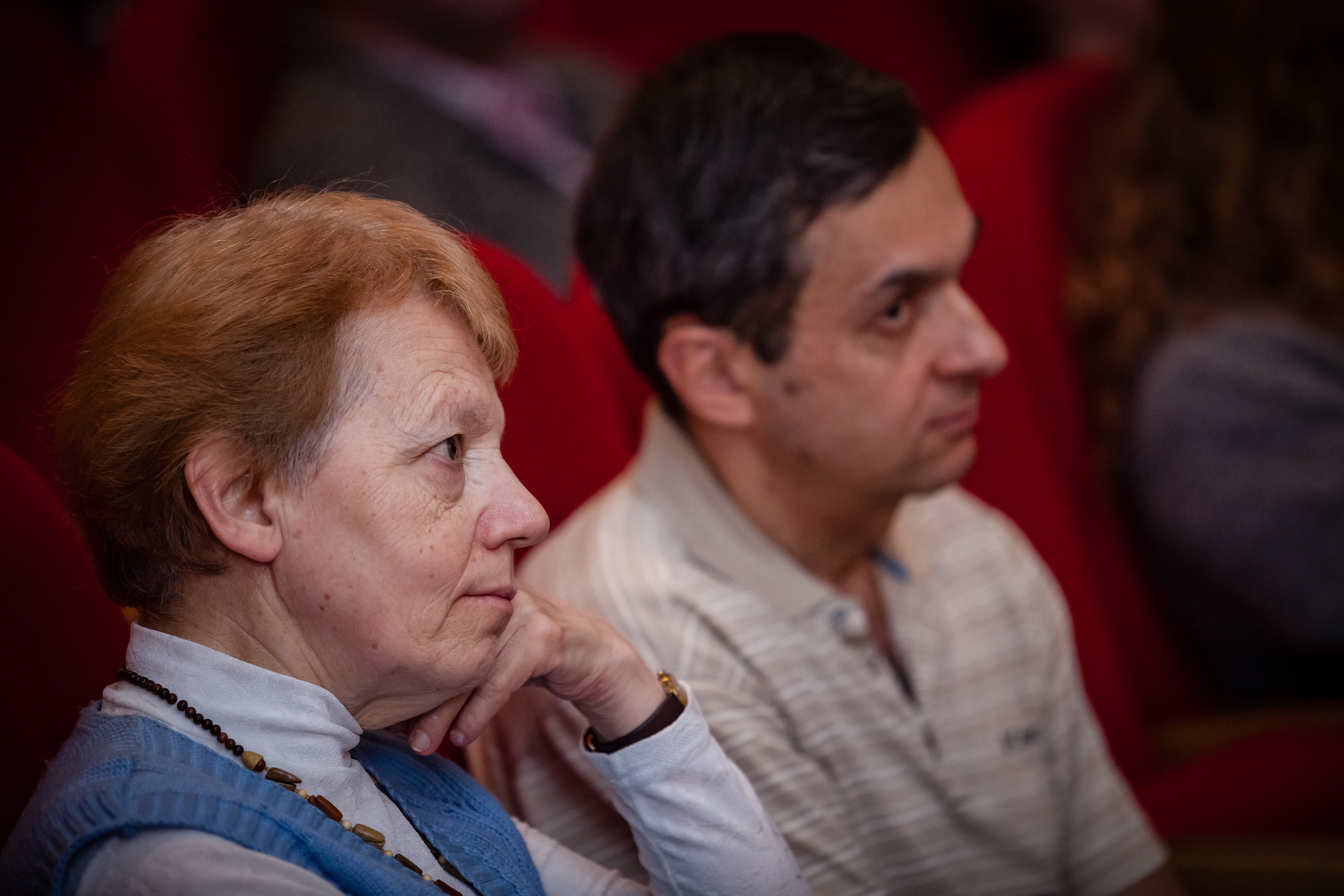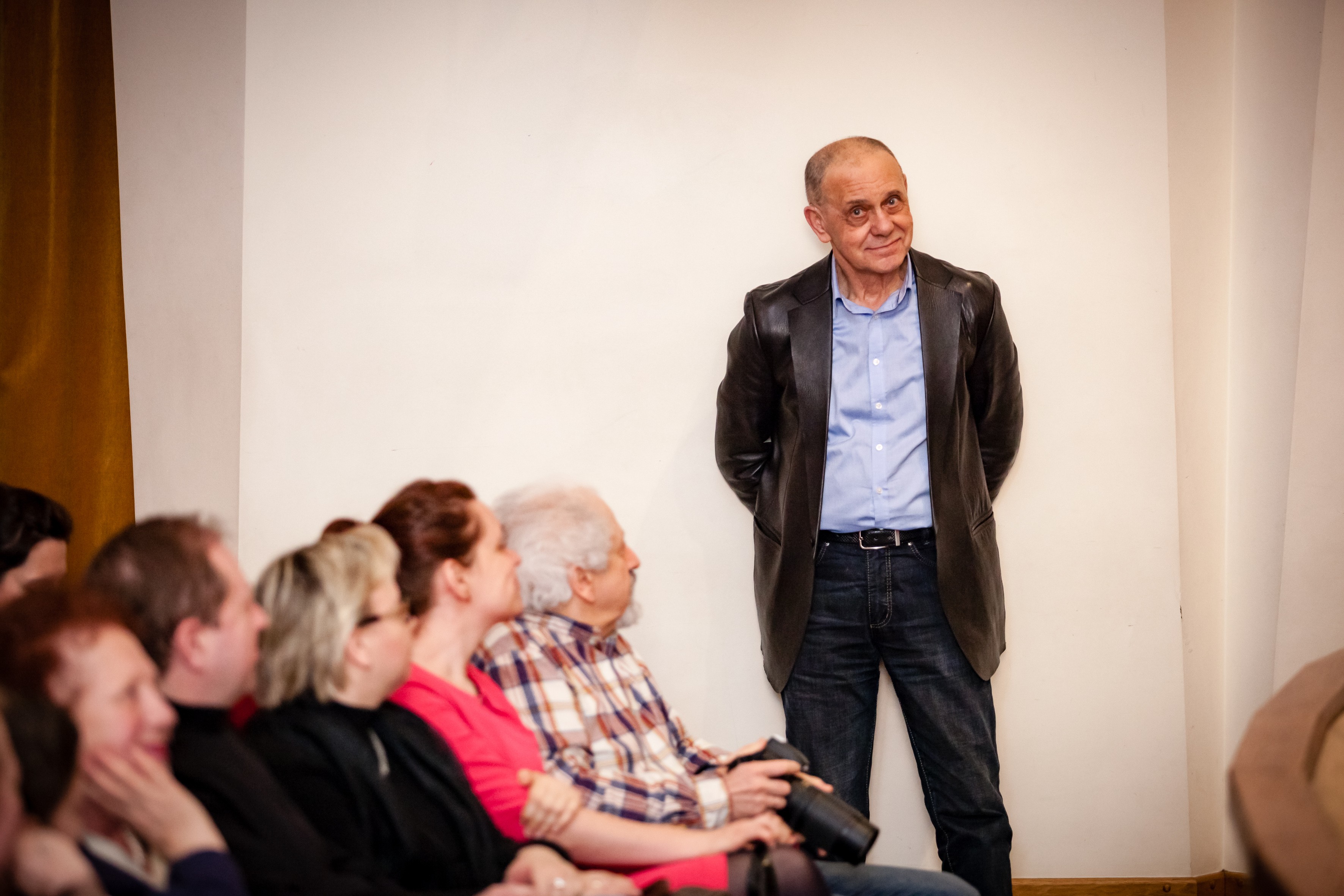 Бардин со свойственными ему юмором и наблюдательностью рассказывал о родителях и послевоенных годах, о юности и поступлении в театральное училище, о Мосфильме и патриархах отечественного кинематографа и о том, кем была для него Екатерина Гениева.