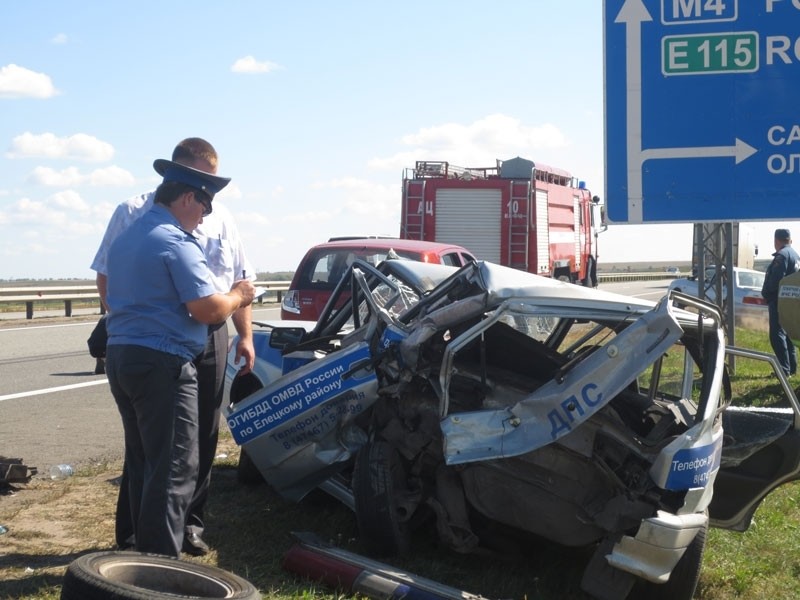 Полицейские на патрульном автомобиле ВАЗ-2114 прибыли на трассу для оформления тройного столкновения: на 384 км. федеральной автодороги М-4 «ДОН» в Елецком районе Липецкой области грузовик ДАФ с полуприцепом зацепил автомобили «Киа» и «Хюндай».