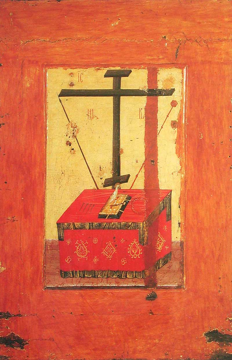 Престол и орудия страстей. Оборот иконы «Богоматерь Владимирская». Москва. Нач. XV в.(?) ГТГ, Москва