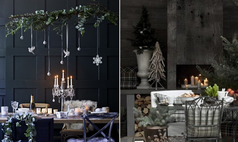 При этом новогоднее оформление в лесном стиле может быть очень светлое, в бело-бежевой гамме (заснеженный лес), может быть и темным (сине-зеленая хвоя, звездное небо) и даже с цветными пятнами (красные снегири на ветках).