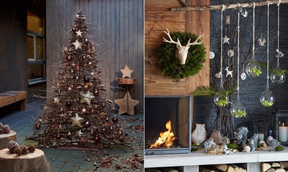 Если вы выбрали лесной стиль, тогда ваша елочка/сосна/пихта будет либо живой (можно в кашпо), либо стилизованной: ветки хвои в кашпо, елка из веток, деревянная елка.