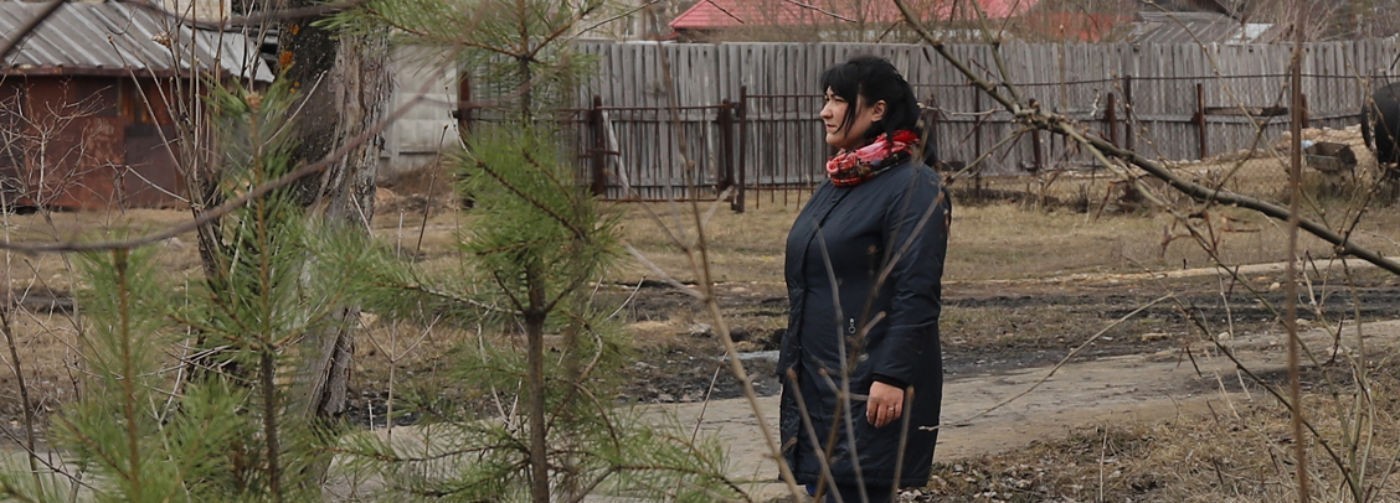 Управляющая поселком сидит за своим рабочим столом в спортивной синей куртке. Флаг России на столе при входе. Она, как и многие не вышедшие на пенсию жители Савинского, мечтает отсюда уехать:
