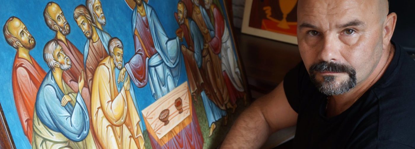 А вскоре отец Евгений, настоятель храма в Ерино, в котором я начал воцерковление, сказал, что хорошо бы найти опытного мастера и мне вместе с ним написать иконы для иконостаса в тот самый храм, в который я впервые пришел. Этим мастером и стал Антон Яржомбек, и началось мое обучение – я помогал Антону написать первые три иконы – Тайную Вечерю, Спасителя и икону Покрова Пресвятой Богородицы. После чего отец Евгений сказал: «Все, благословляю вас писать иконы для иконостаса дальше». Так я написал праздничный и деисусный ряд.