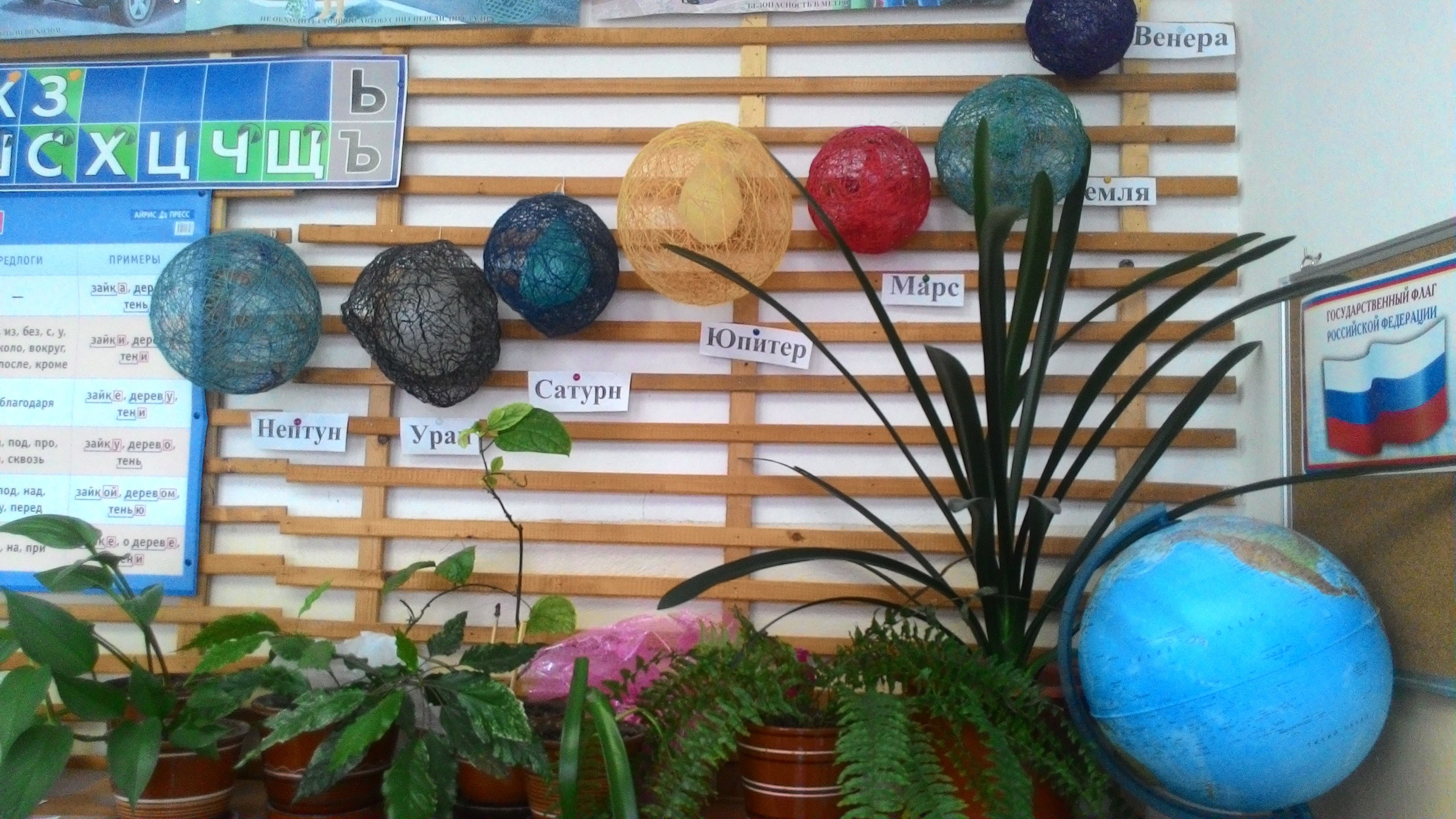 Татьяна Анатольевна встречает меня у входа, и мы поднимаемся к ней в класс. На полочках стоят пластилиновые фигурки и большие конструкции из папье-маше. На стене – яркие плетеные шары-планеты с подписями-названиями. В третьем коррекционном классе учатся около десяти учеников. Те, что с ЗПР, считаются относительно «легкими». Недавно добавились «тяжелые» дети с синдромом Дауна и туберозным склерозом (один из пяти случаев на всю Карелию).