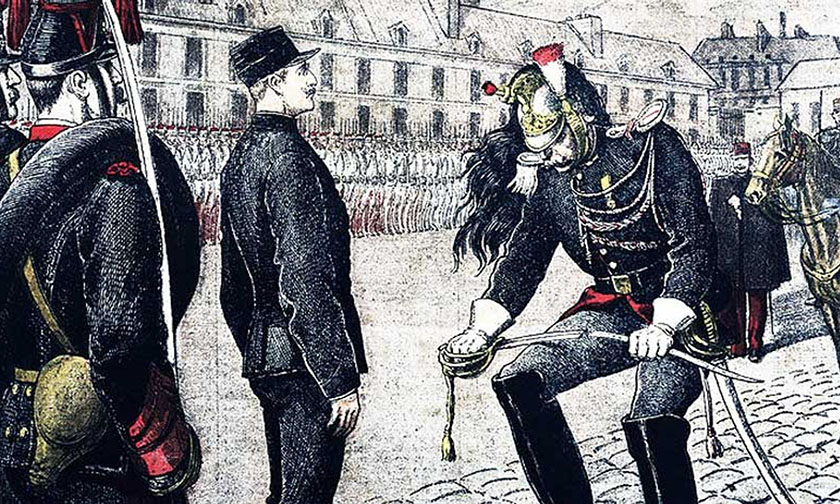 Дело было передано в суд, и Дрейфуса признали виновным. После этого его вывели на городскую площадь, демонстративно оторвали знаки отличия от его униформы и сломали его меч. Это называлось гражданской казнью Дрейфуса.