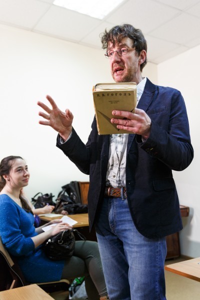 Мне очень нравился Гоголь. Я его почему-то любил. Я не понимал, почему. Мне было его интересно читать, я ловил определенного рода кайф. Мне казалось, это так классно. А когда люди приходили, я же работаю с математиками, набранными из разных школ, вот они приходят и при слове «Гоголь» у них какое-то тусклое впечатление. Ну, сатира на самодержавие. Хорошо. Ну, «Мертвые души», и нужно быть живыми душами. Набор каких-то слов о том, что надо знать про Гоголя, а ощущения, что Гоголь – это классно, не получалось.