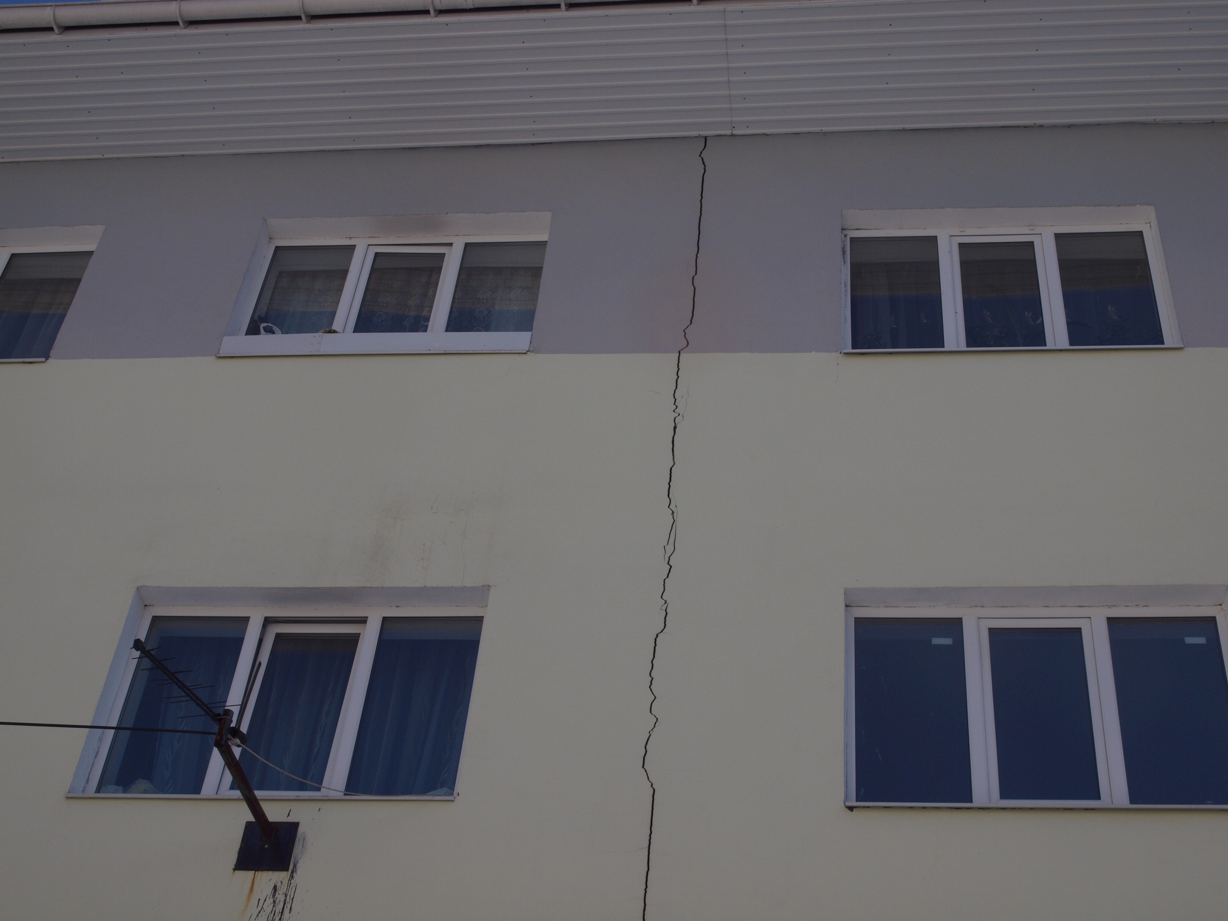 А самое страшное, что трещина эта заметна не только в квартире. Она отчетливо видна с улицы и разделяет дом на две половины.
