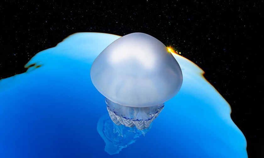 Медуза, похожая на ракету в космосе. Фото: Toni Bertran Regàs