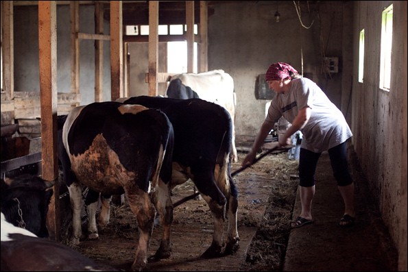 — Я сама из Молдавии, в начале восьмидесятых училась в Бологом в техникуме на зоотехника. На преддипломную практику приехала сюда, в деревню Гарусово Тверской области. Познакомилась с Валерой, местным парнем, он тогда шофёром работал. Поженились, остались в деревне. Восемь лет я проработала мастером на молокозаводе, муж был управляющим в хозяйстве. А потом настал 1995 год, начался развал, поголовная приватизация. Директора хозяйств всё стали к своим рукам прибирать. Совхоз, где мы работали, был богатейшим, а остались от него только рожки да ножки. Молокозавод закрыли — молока-то не было. Мы забрали свой земельный пай и ушли из хозяйства, стали работать на себя. Начинали с малого, потом переехали на хутор, купили дом, построили подворье.