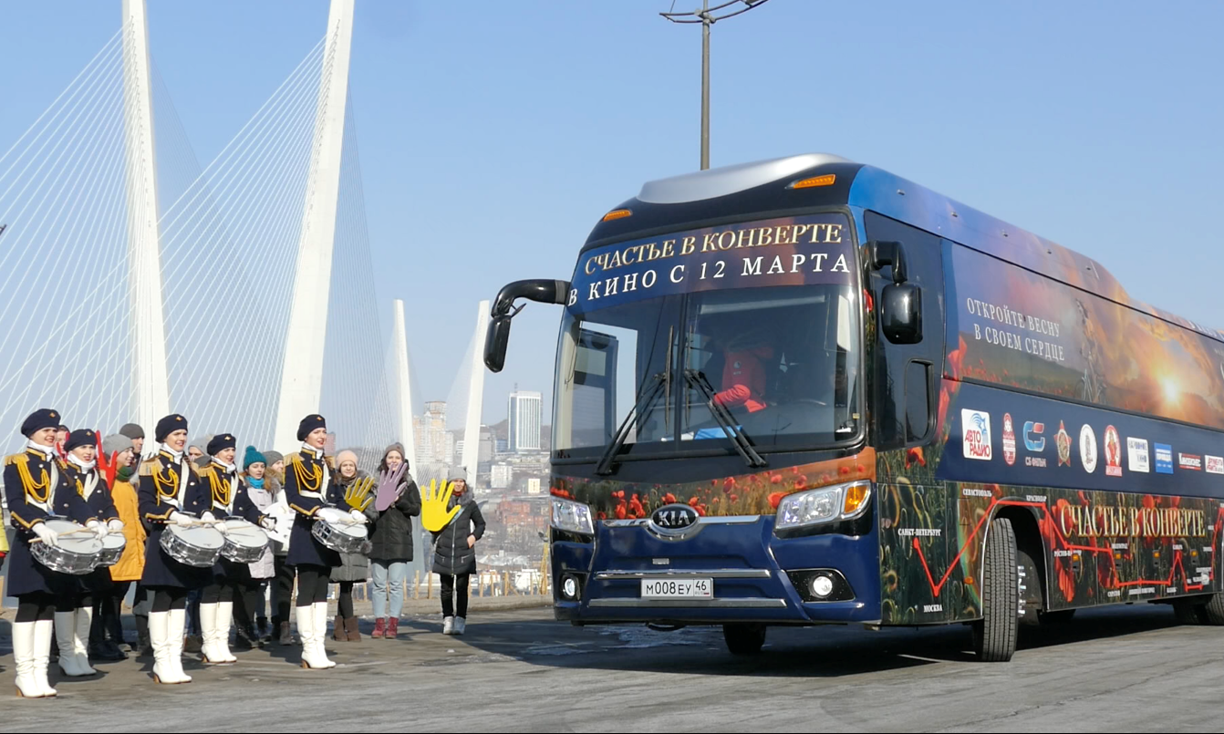 8 февраля. ПРАВМИР. Художественный фильм «Счастье в конверте» начал беспрецедентный автобусный промо-тур по стране. Премьеры фильма перед выходом в прокат состоятся в 23 городах России — от Владивостока до Санкт-Петербурга.