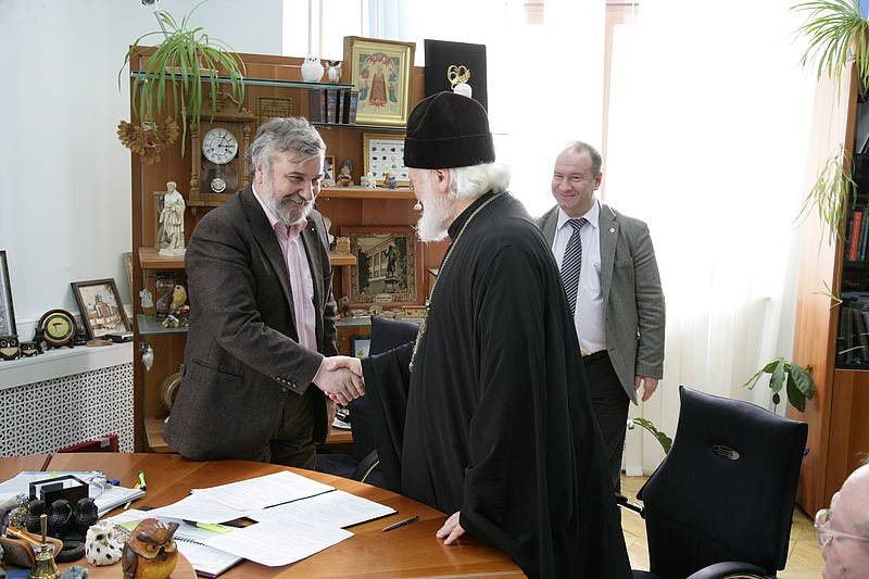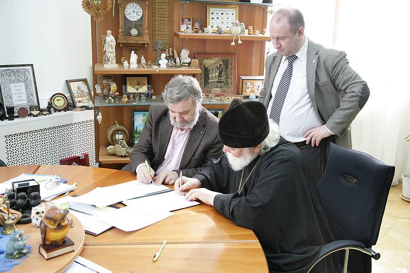 Свои подписи под договором поставили декан философского факультета, чл.-корр. РАН Владимир Миронов и ректор ПСТГУ протоиерей Владимир Воробьёв.