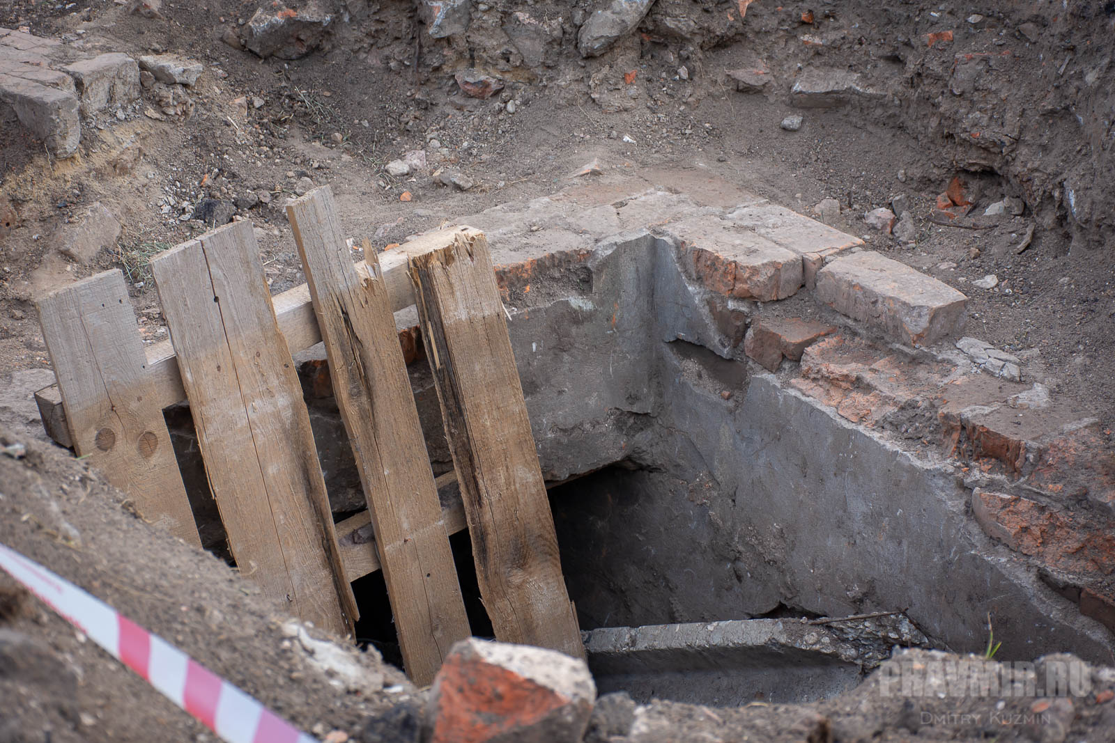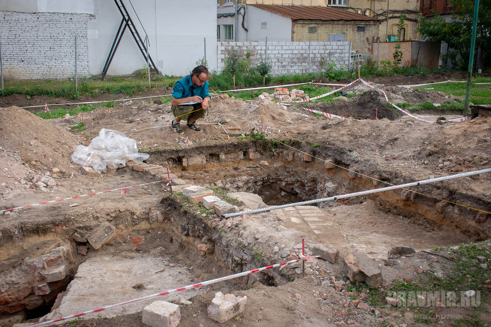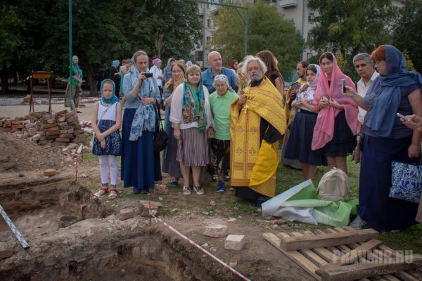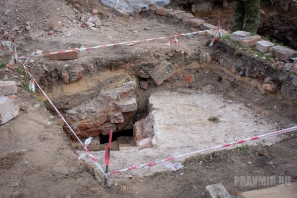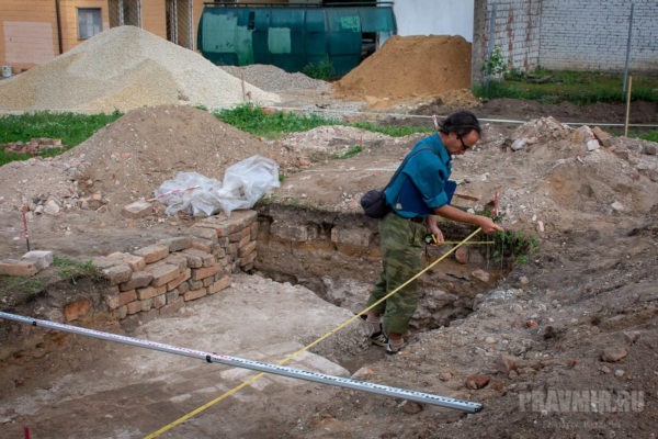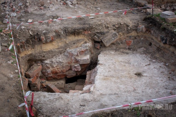 К работам по благоустройству парка приступили в июне. Отец Александр и активные прихожане храма забеспокоились почти сразу, а когда стало понятно, что строители копать траншеи осторожно не собираются, своими силами вскрыли дерн на холме и обнаружили под ним кладку. Археологи определили, что это остатки храма, остановили работы и приступили к раскопкам. Обнаружили фрагменты стен и фундамента, отмостку вокруг храма, дверь, ведущую в подклет, и сам подклет. Казалось бы, вот оно, культурное достояние, и ГБУ «Автодороги» должно немедленно прекратить работы вокруг холма и уж тем более отказаться от идеи построить сцену.