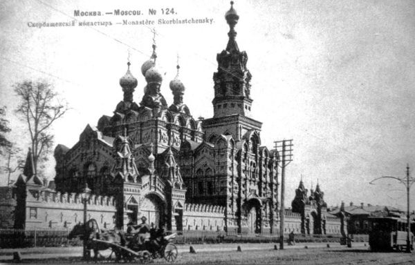 В начале ХХ века в центре Москвы, между Сущевским валом, Новослободской улицей и улицей Тихвинской, стоял краснокирпичный женский монастырь, названный Скорбященским во имя иконы Божией Матери «Всех скорбящих радость». Основали его князья Голицыны на территории своей усадьбы. В ансамбль монастыря входили несколько церквей, в том числе Трех святителей, кельи сестер, трапезная, школа и кладбище. В 1918 году монастырь упразднили, а через 10 лет разрушили вместе с погостом. Сохранились только обезглавленный собор Спаса Всемилостивого и рукодельный корпус – в нем действует храм.