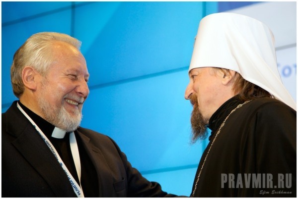 «У нашего форума 2 функции. — сказал он. — Одна критическая — посмотреть, что же произошло, и дать оценку. А вторая — терапевтическая: посмотреть, как уврачевать проблемы, которые есть. Сегодня мы живем в постсекулярном обществе: из-за недоверия социальным доктринам люди перестали доверять даже тому, что видят и слышат. В сердцах поселилась тревога. Необходим какой-то фундамент, более прочный, чем новейшие социальные доктрины. Поэтому идет обращение к религии, к догматам. Теология входит в политику, ее используют повсеместно. Очень важно сейчас разглядеть угрозу неправильного использования теологии.