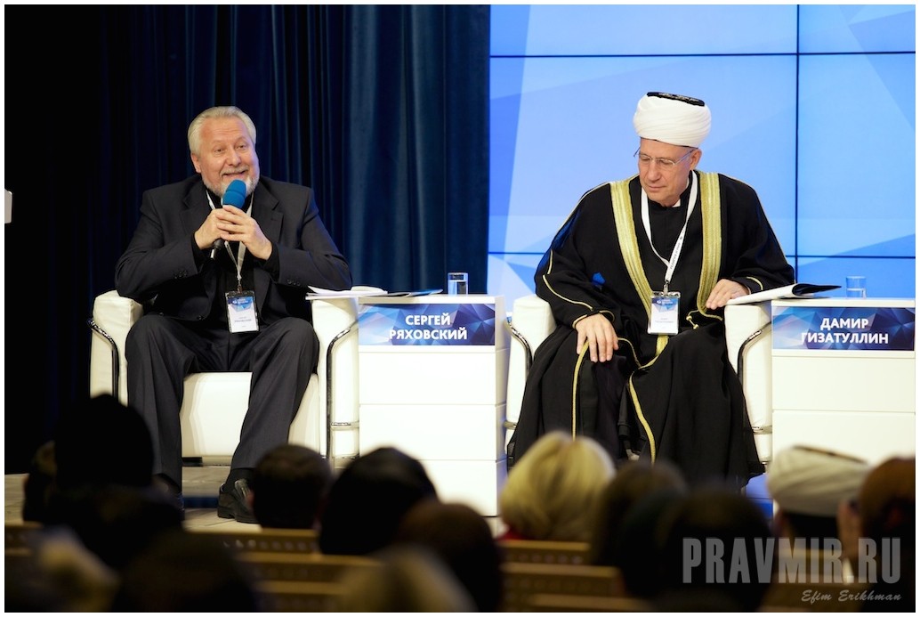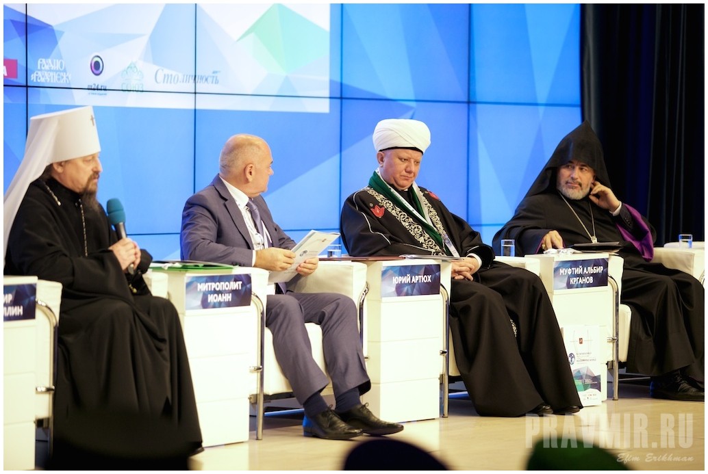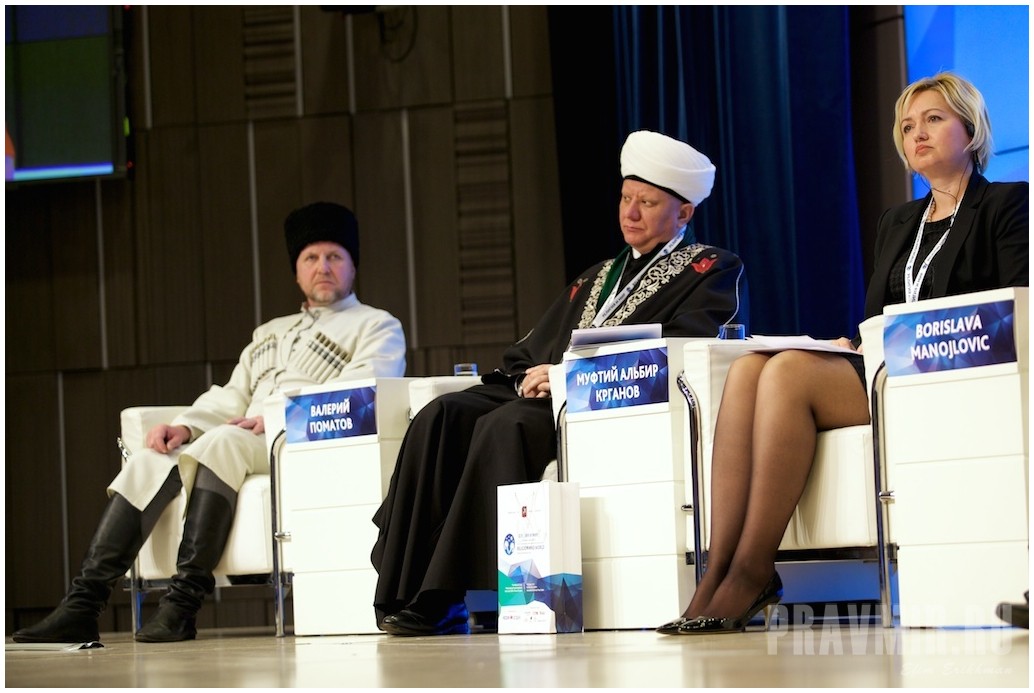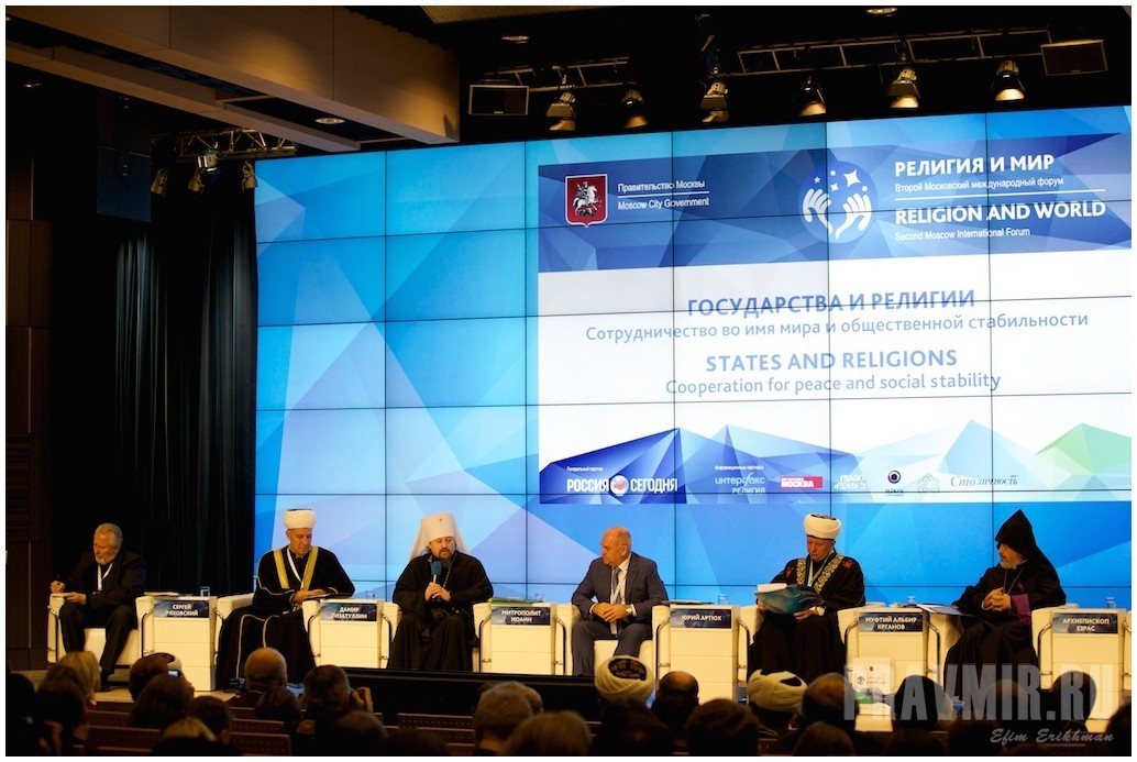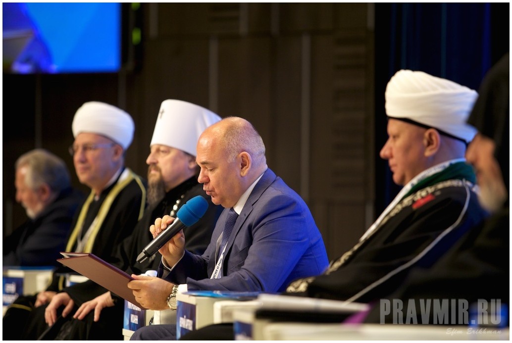 «…Можно констатировать, что повестка дня Форума продиктована самой жизнью. Вопросы войны и мира, проблемы взаимодействия государства и религиозных организаций в России и в зарубежных странах, укрепление традиционных и поиск новых форм взаимодействия и сотрудничества в социальной и духовной сферах, противойдействие экстремизму и ксенофобии, осознание роли и значения миротворческих религий в обществе…» — так председатель Духовного Управления мусульман г. Москвы и Центрального региона «Московский муфтият» муфтий Альбир Крганов очертил круг основных тем этого Форума.
