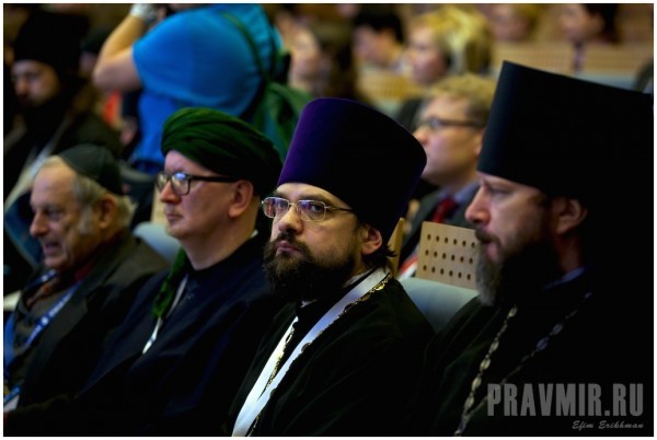 «Нас всех беспокоит рост числа вооруженных конфликтов — на севере Африки, на Ближнем Востоке, на Юго-востоке Украины. Такие конфликты всегда связаны с многочисленными нарушениями прав человека, с разрушением жилья, гибелью и страданиями людей. Люди там обожжены болью и страданиями. Они нуждаются в добром слове и в нашей духовной поддержке. Верующие разных конфессий и их лидеры не могут стоять в стороне, когда бомбят наши Божьи храмы, мечети, синагоги, наши города. Миротворчество вне политики и ангажированности. Хотя нас и пытаются отождествлять с политикой российских властей, вне сомнения, нами движет исключительно религиозное братское чувство любви к к нашим братьям и сестрам…»