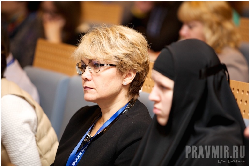 Пока мужчины занимались политикой и социологией в соседних залах, где параллельно проходили экспертные сессии «Духовные инициативы в общественном пространстве как фактор укрепления гражданского мира», «Верующая молодежь: образование, социальное служение, культурные и спортивные проекты» и «Межрелигиозный диалог и вызовы современности», пока они отвечали на все эти вызовы, женщины размышляли о том, как построить и сохранить традиционную семью в посттрадиционном обществе. Модерировала эту сессию главный редактор портала «Правмир» Анна Данилова.
