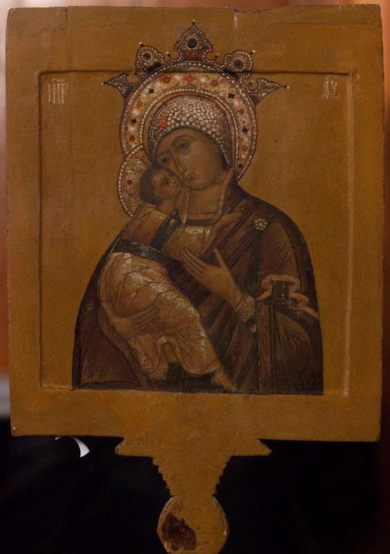 Икона выносная двусторонняя. Богоматерь Умиление – Святитель Николай, архиепископ Мирликийский. Около сердины XVII века. Среднерусские земли. Дерево, темпера. Происхождение не установлено. Находилась в собрании В.С.Самсонова. Поступила в музей в сентябре 2007 года от вдовы коллекционера. Реставрирована до поступления в коллекцию. Инв. № ЧМ-332.
