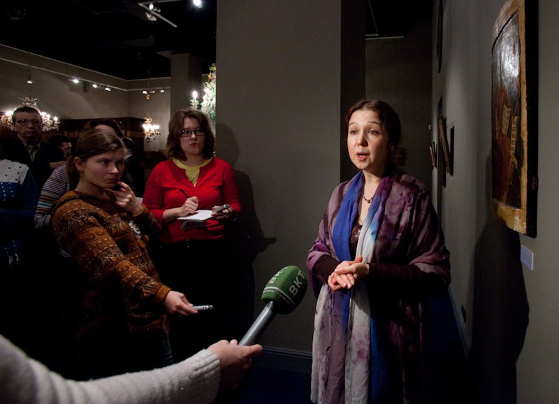 Пресс-конференция: Шалина Ирина Александровна, искусствовед, Русский музей (Санкт-Петербург), научный руководитель выставки, кандидат искусствоведения , ведущий научный специалист Государственного Русского музея, автор многочисленных исследований и публикаций, эксперт Росохранкультуры; Волобаев Алексей Алексеевич, генеральный директор Центра изящных искусств на Волхонке; Бойцов Александр Петрович, директор благотворительного фонда «Русская икона»