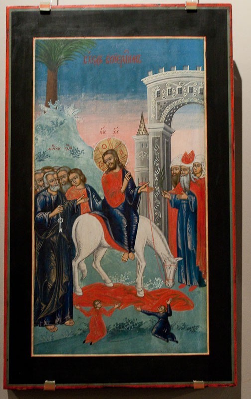 Вход в Иерусалим из праздничного чина иконостаса. Первая половина XVIII века. Центральное Поволжье. Частное собрание (Москва).