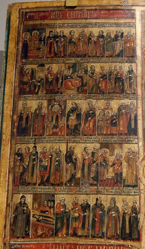Коронование Богоматери; Распятие; Снятие со Креста; Минея на сентябрь, октябрь, ноябрь и декабрь. Конец XVIII века. Частное собрание (Москва).