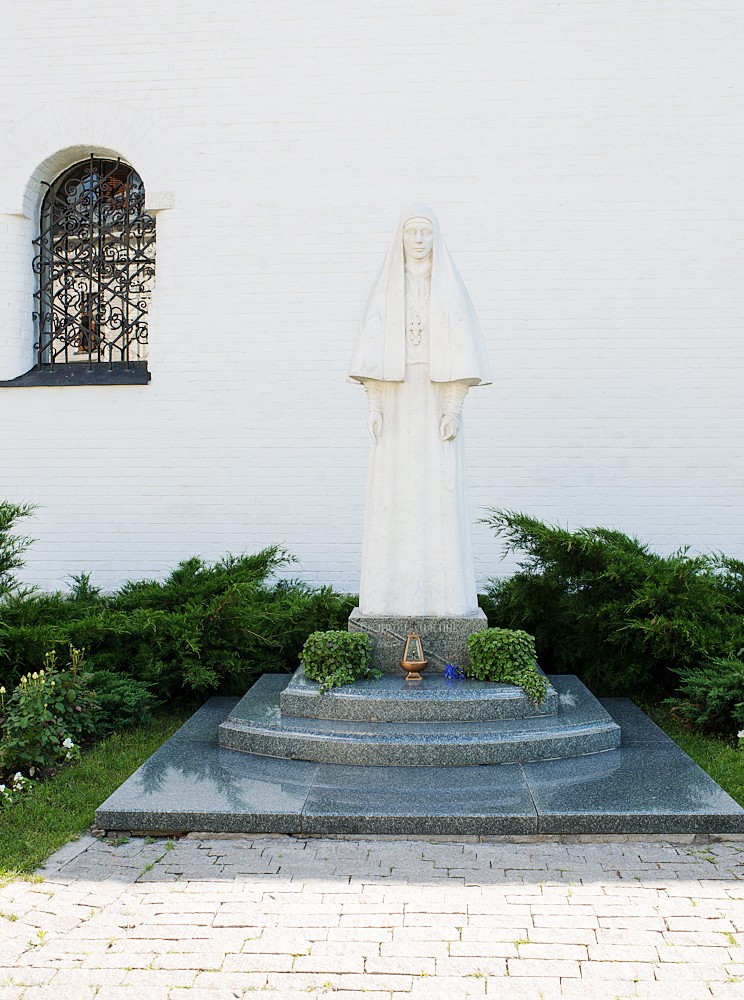 У северной стены храма стоит памятник основательнице обители работы известного скульптора, народного художника России Вячеслава Клыкова, установленный в 1990 г. На пьедестале высечены слова автора: «Великой Княгине Елизавете Феодоровне с покаянием»