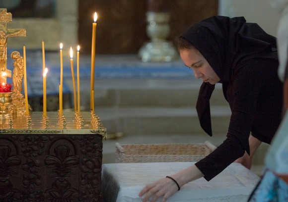 Фрагмент созданной Великой Княгией Елисаветой Феодоровной иконы святых праведных Марфы и Марии, ее молитвенник