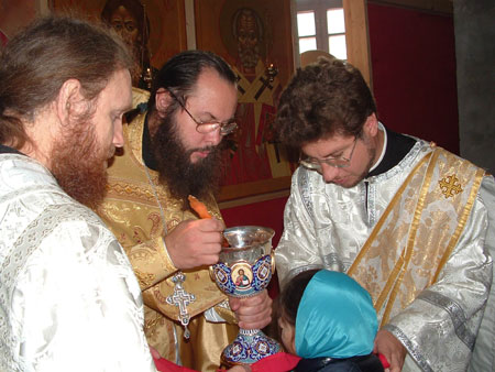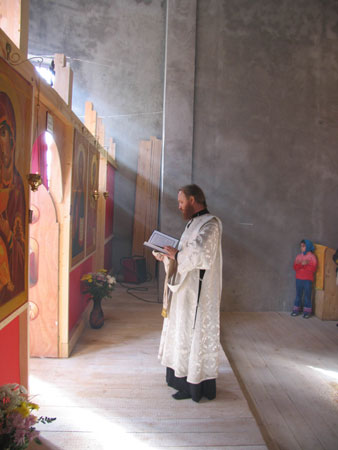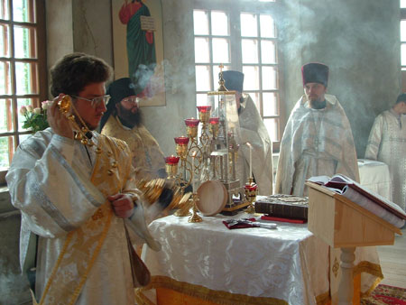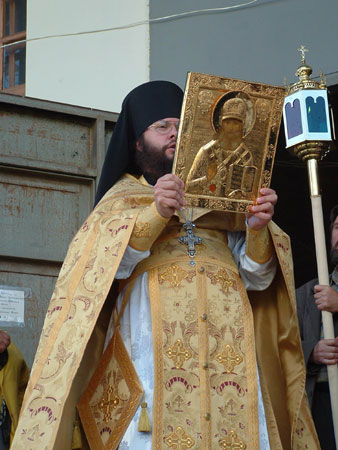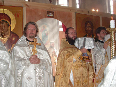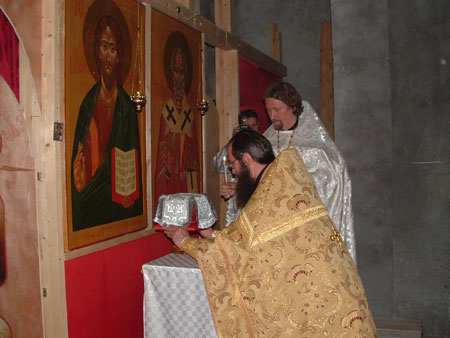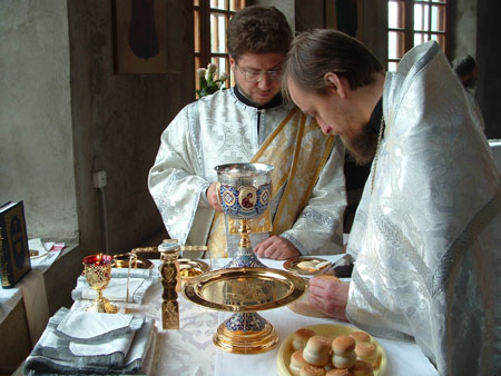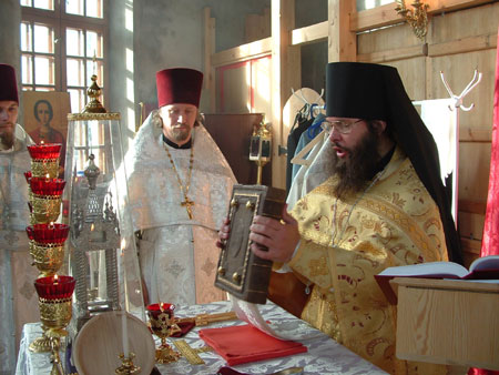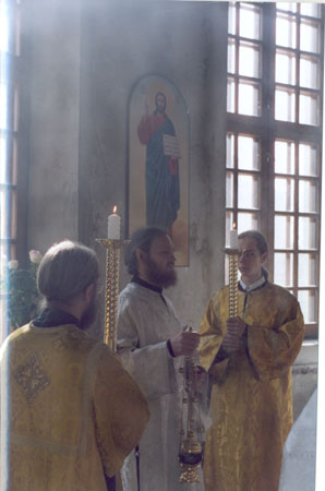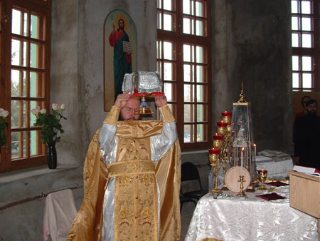 Игумен Феофилакт (Безукладников) переносит антиминс на Св. Престол