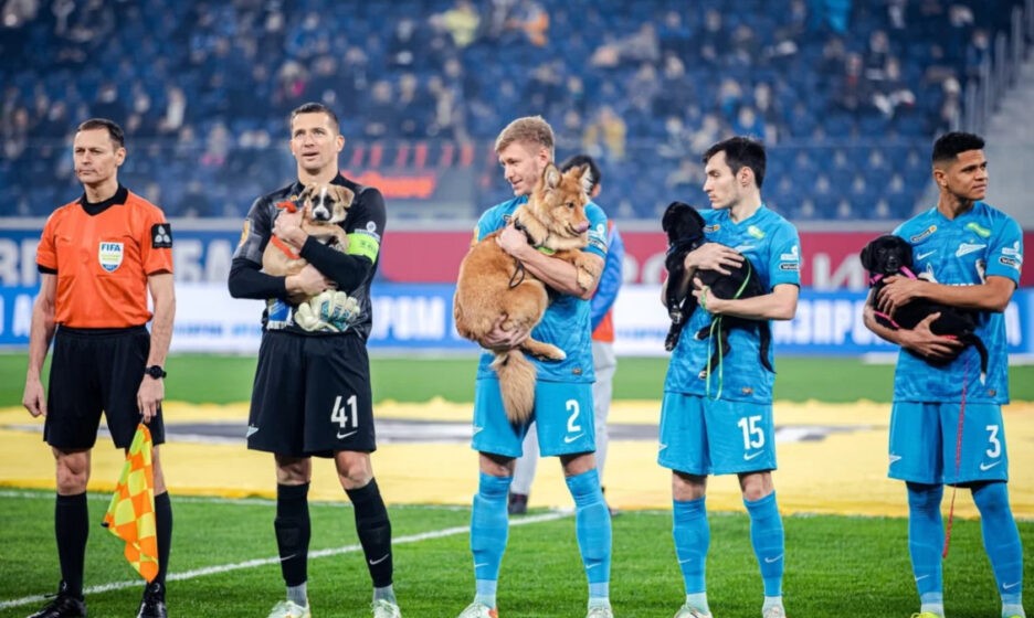 Футболисты «Зенита» вышли на матч со щенками из приютов (фото)