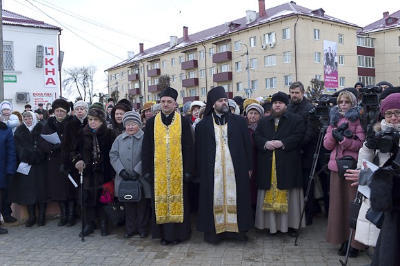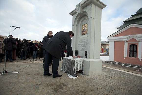 На Красной площади города Гагарина торжественно открыта и освящена стела в память «невинно убиенных в октябре 1812 года наполеоновской армией 2000 пленных русских воинов в районе Гжатска».
