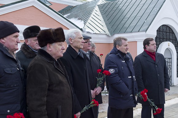 Открыли памятник губернатор Смоленской области Алексей Островский, заместитель министра культуры РФ, член центрального совета российского Военно-исторического общества Григорий Ивлиев, благочинный Гагаринского округа игумен о.Александр (Карпиков).