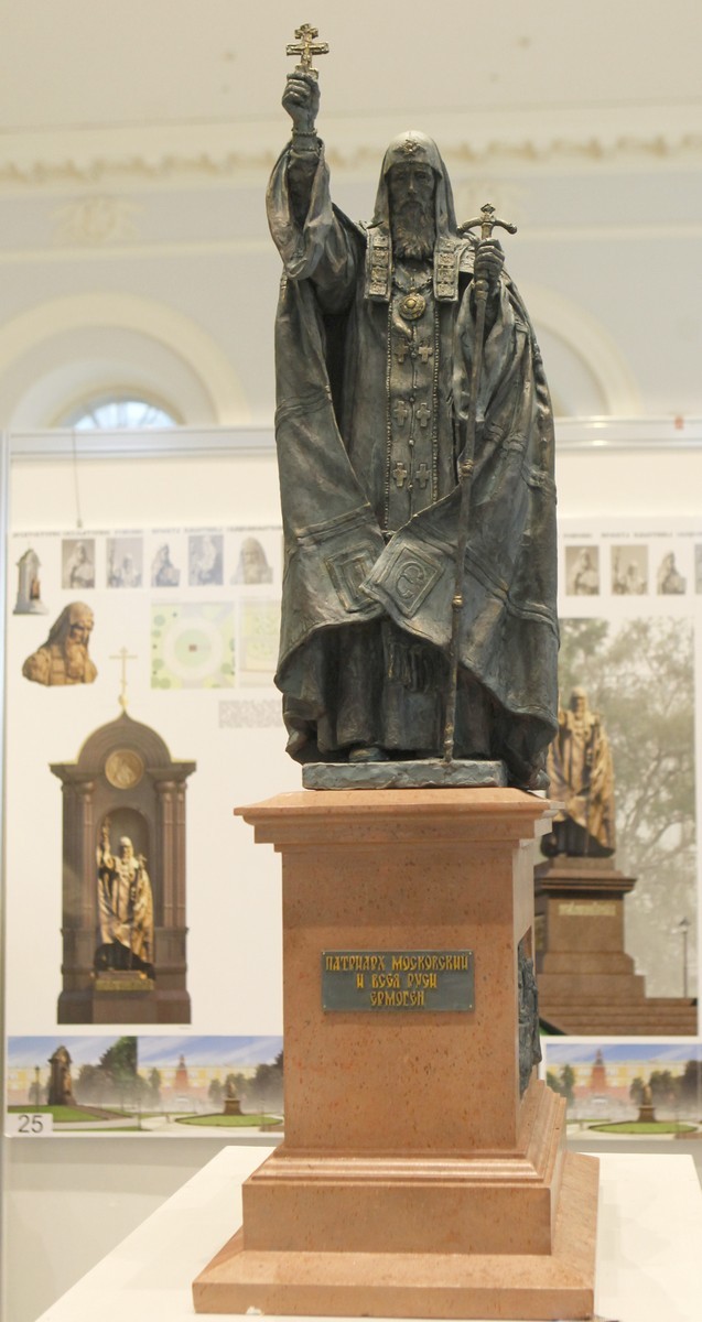 Решение о создании памятника священномученику Гермогену было принято в 1913 году, когда он был прославлен в лике святых. Монумент предполагалось установить у стен Московского Кремля, где сейчас находится мавзолей, однако этот замысле не был воплощен.