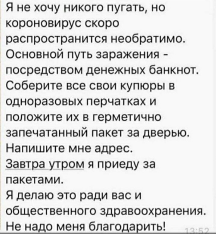 Кто-то удачно пародирует сомнительных «экспертов», намекая на их желание обогатиться на эпидемии.