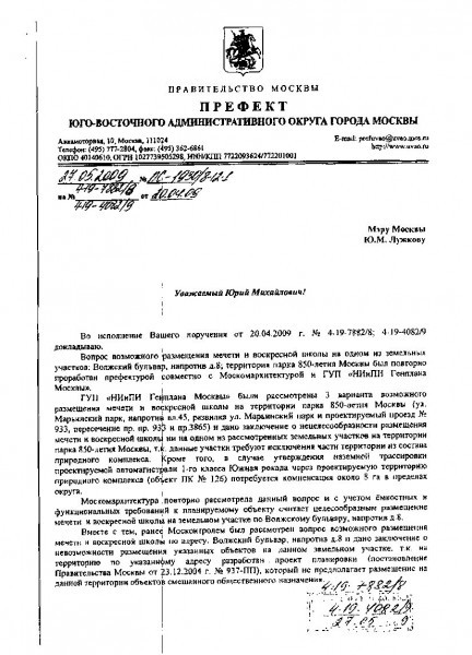 Московские власти выделяют под строительство мечети участок на Волжском бульваре.