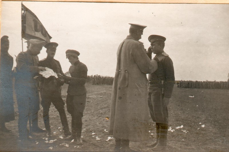 Начальник 10-й кавалерийской дивизии генерал-майор граф Ф.А. Келлер вручает Георгиевский крест вахмистру 1-го Оренбургского казачьего полка. Фото из фондов ЦГКФФА Украины имени Г. С. Пшеничного.
