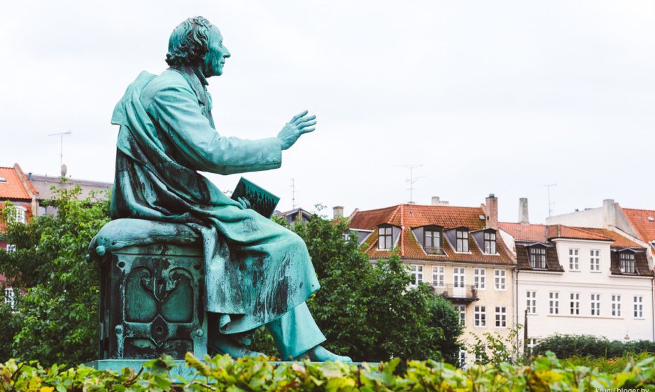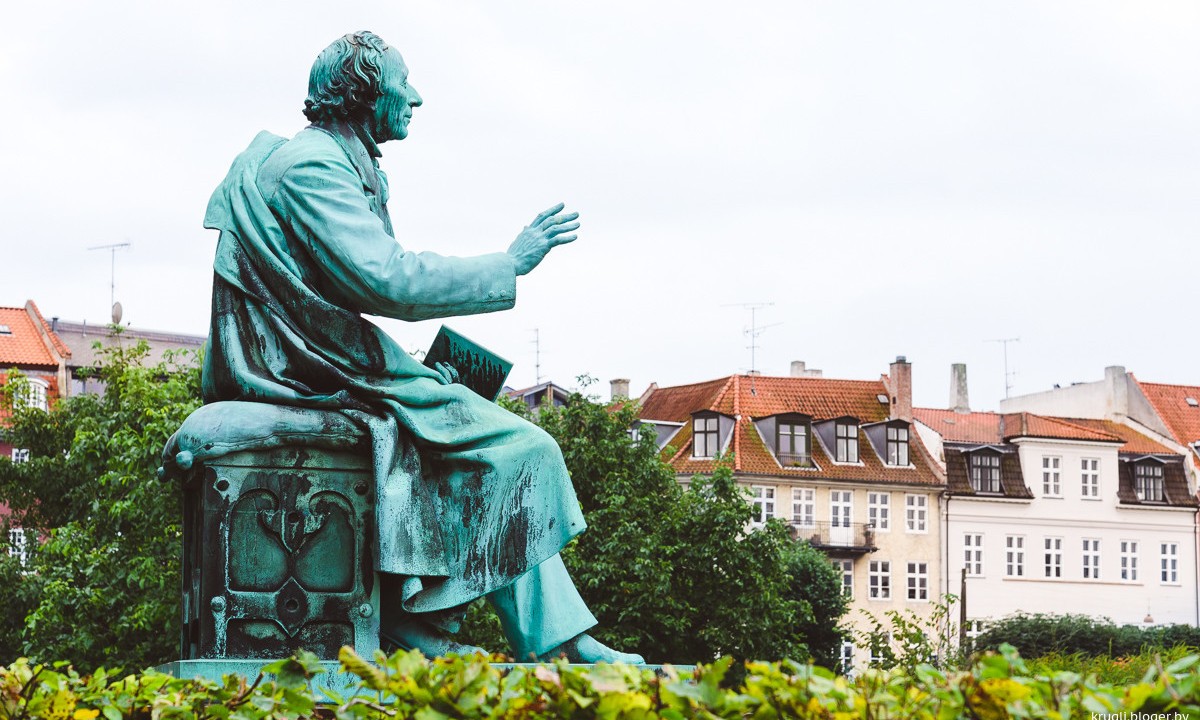 Самый знаменитый памятник Андерсену находится, конечно, на его родине – в Дании, в центре Копенгагена. В Королевском саду, напротив розового замка Розенборг, на небольшом возвышении сидит всеми здесь любимый сказочник. Он задумчиво смотрит вдаль. В левой руке – закрытая книга, а правая протянута словно для благословения. Памятник был установлен в 1880 году, вскоре после смерти писателя, на том месте, где в свое время находившийся на грани нищеты молодой Ханс Кристиан часами сидел на скамейке, ел грошовую булку и, вероятно, любовался белыми лебедями, плававшими в пруду.