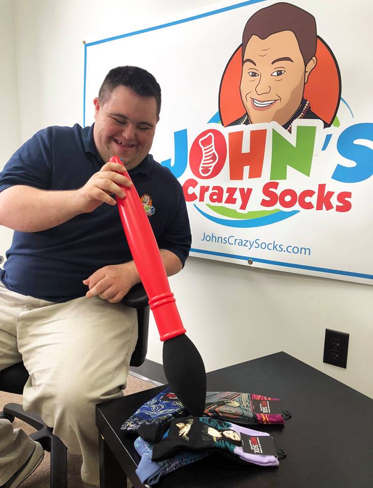 На данный момент John’s Crazy Socks создала 35 рабочих мест, 18 из которых занимают люди с особенностями. Многие из них помогают сортировать и держать в порядке носки на складе.